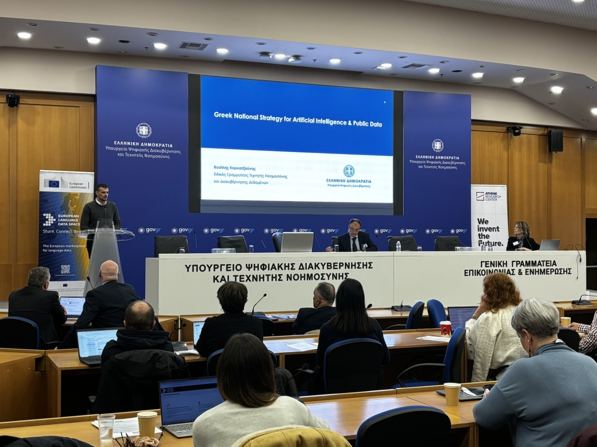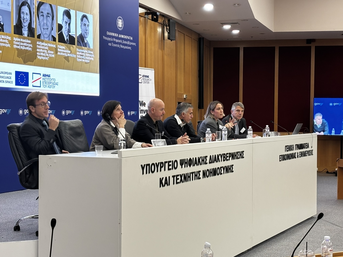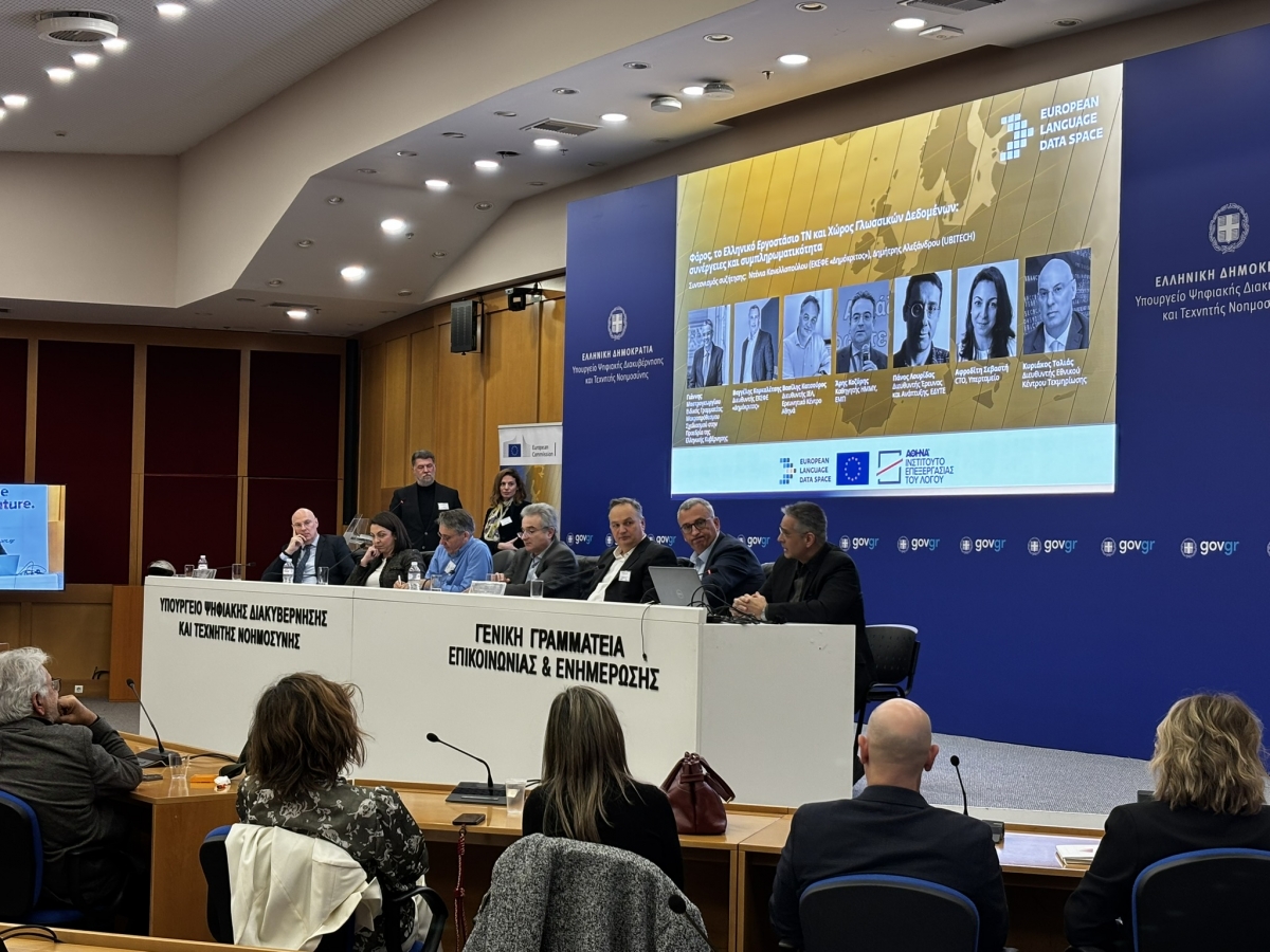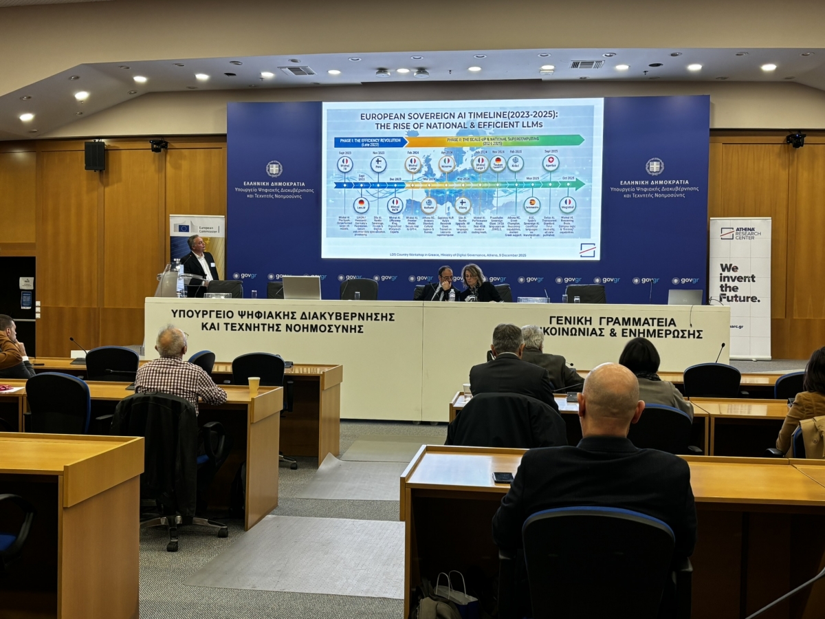 Με μεγάλη επιτυχία διεξήχθη η ημερίδα του Ευρωπαϊκού Χώρου Γλωσσικών Δεδομένων (LDS-Language Data Space) που συνδιοργάνωσε το Ινστιτούτο Επεξεργασίας του Λόγου του Ερευνητικού Κέντρου Αθηνά και ο Ευρωπαϊκός Χώρος Γλωσσικών Δεδομένων, στο Υπουργείο Ψηφιακής Διακυβέρνησης και Τεχνητής Νοημοσύνης, την Τρίτη 9 Δεκεμβρίου 2025. Κύρια θέματα της εκδήλωσης, που συγκέντρωσε πλήθος ακαδημαϊκών, ερευνητών, εκπροσώπων της πολιτικής ηγεσίας, αλλά και επιχειρήσεων, ήταν οι γλωσσικές υποδομές, τα γλωσσικά δεδομένα και οι συνέργειες που διαμορφώνουν το μέλλον της γλωσσικής τεχνολογίας στην Ελλάδα στην εποχή της ΤΝ.